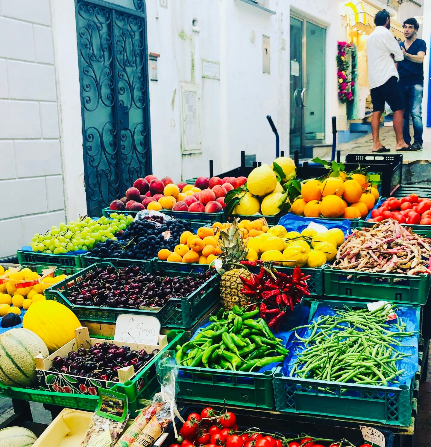 The colors of the rainbow on the Amalfi Coast. Beautiful lemons and fresh produce.