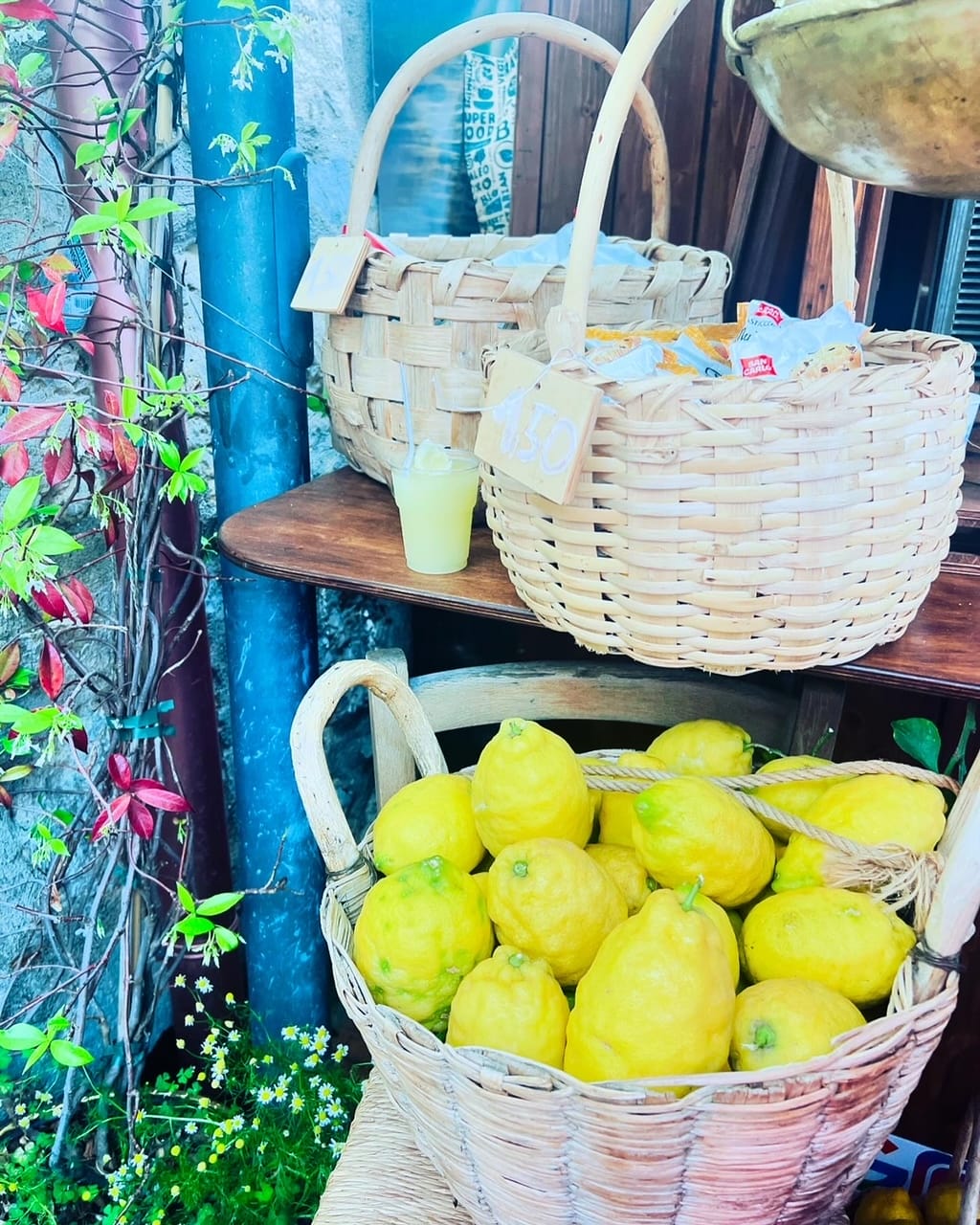 The colors of the rainbow on the Amalfi Coast. Beautiful lemons and fresh produce.